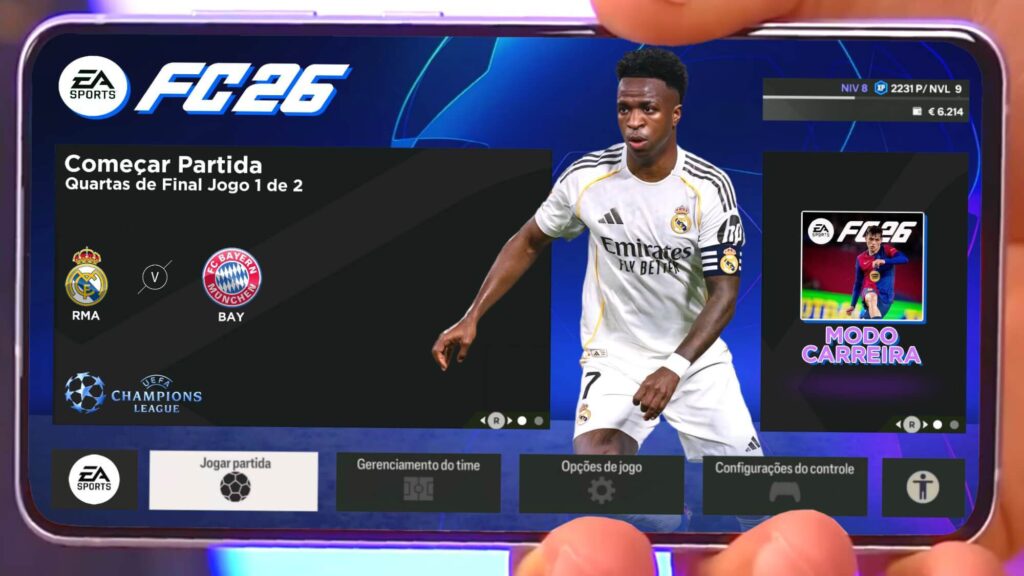 Já temos o Modo Carreira no Fifa 16 Mobile mod EA FC 2026, isso mesmo, o Modo Carreira finalmente saiu para o jogo, e está sensacional, bem parecido com o Modo Carreira de console, onde você seleciona um time de qualquer liga, e você precisa administrar ele, pagando salário dos jogadores, renovando contrato, vendendo jogadores e fazendo contratações para fortalecer seu elenco. No Modo Carreira do Fifa 16 Mobile mod EA FC 2026, você pode jogar quantas temporadas quiser, ganhar diversos torneios e receber proposta para comandar outros clubes e seleções. Já o Rumo ao Estrelato, creio que em breve chegará no jogo, mas é possível você jogar com a câmera de Rumo ao Estrelato e selecionar apenas um jogador na partida, o que deixa o jogo bem parecido com o modo.