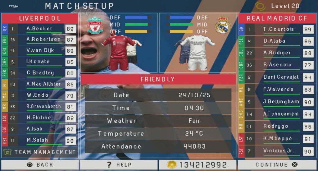 No FTS 2026 Mobile Atualizado, o modo de jogo principal é o Modo Carreira, ao selecionar o Modo Carreira, você precisar adicionar o nome do seu treinador e presidente do clube. Agora selecione a sua equipe, é possível selecionar equipes de uma quantidade limitada de ligas, no caso as principais. As competições que você vai jogar é a liga nacional, por exemplo a Série A Enville da Itália, caso você selecione um time italiano. Você também joga a Coppa Itália, e se caso se classificar, a Uefa Champions League que paga muito bem, é a mais cobiçada do Modo Carreira. Ainda tem as duas competições internacionais caso você não se classifique para a Uefa Champions League, a Uefa Europa League e a Uefa Conference League.