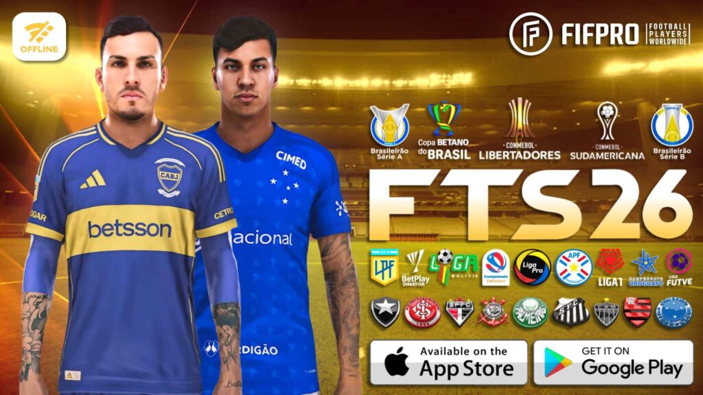 Na última atualização do First Touch Soccer 2026 Sul-Americano, os editores criaram uma versão remasterizada parecida com o Efootball. Efootball 2026 mod First Touch Soccer Sul-Americano, isso mesmo, a fonte do jogo efootball, as logos e as competições. Nessa atualização de 2026 a narração brasileira ainda não está 100% legal, falta muita coisa, e as torcidas gritando e cantando no estádio as musicas de seu times também não estão perfeitas.