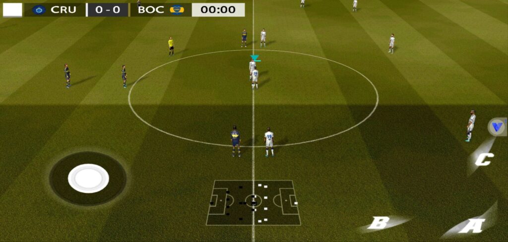 Para quem pensava que o jogo é muito difícil, lembre-se que tem apenas três botões e o analógico. O analógico faz três funções nesse jogo, o primeiro deles é movimentar o jogador; o segundo é correr, isso mesmo, o jogo não tem um botão específico para o jogador correr, e por isso você precisa “esticar” o analógico no máximo; e a terceira função é mirar, isso mesmo, você usa o analógico para mirar na hora do toque, cruzamento e chute. Os outros três botões (ABC) tem como objetivo tocar a bola, chutar e fazer cruzamentos, o botão B você toca a bola curta ou longa, no A você chuta, dá carrinho e cabeceia, e o C você cruza a bola, troca o jogador e faz gol de cobertura. Faça deslizes na tela para fazer dribles, por exemplo o deslize para cima que tem como objetivo dar chapéu de carretilha.